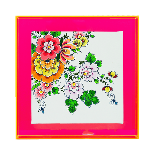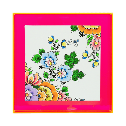 Delfts blauw vind je meestal terug op aardewerk, maar wij hebben het dit keer anders aangepakt. We hebben de delftsblauwe bloemen een kleur gegeven, waardoor ze extra opvallen. Speciaal voor alle kleurliefhebbers. Daarnaast passen de Delftsblauwe bloemen in kleur zo ook goed bij de neon gekleurde lijstjes. We hebben de Delftsblauwe bloemen in 4 varianten gemaakt. Het leuk hieraan is, dat je ze ook met elkaar kunt combineren in een twee-, drie- of vierluik.