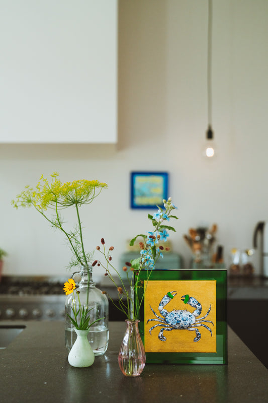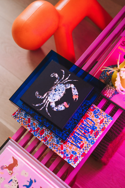 Delfts blauw design, ook wel bekend als Delfts blauw aardewerk, is een tijdloze Nederlandse kunstvorm en is weer helemaal hip. Het onderscheidt zich door zijn karakteristieke blauw-witte kleurenpalet en ingewikkelde patronen, die vaak geïnspireerd zijn door de rijke geschiedenis van Nederland en het verre oosten. Delfts blauw design omvat een breed scala aan producten, van porselein en tegels tot vazen en sierobjecten, die niet alleen getuigen van vakmanschap, maar ook van de culturele erfenis van Nederland. De strakke baklijst combineert prachtig met de klassieke, delftsblauwe krab.