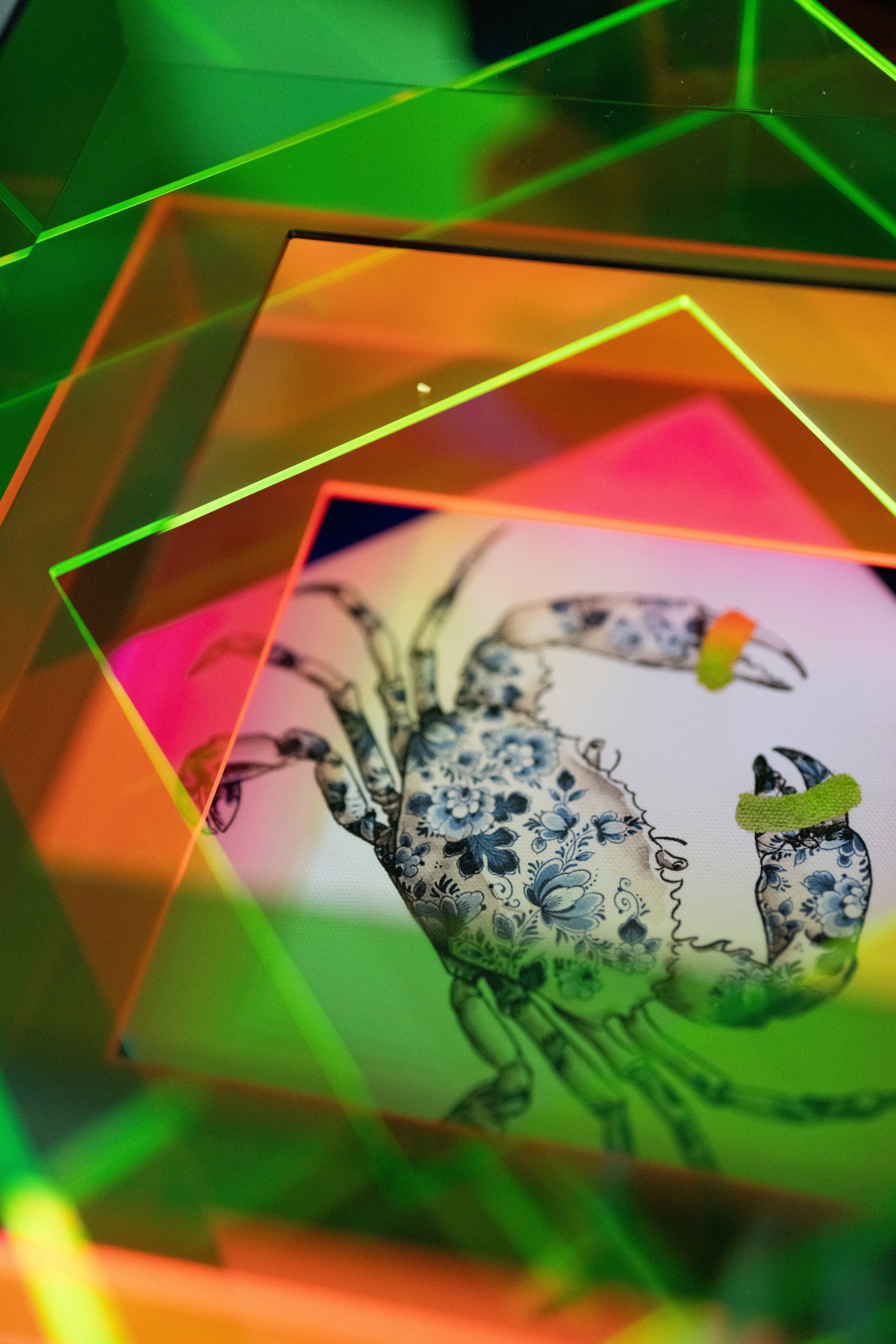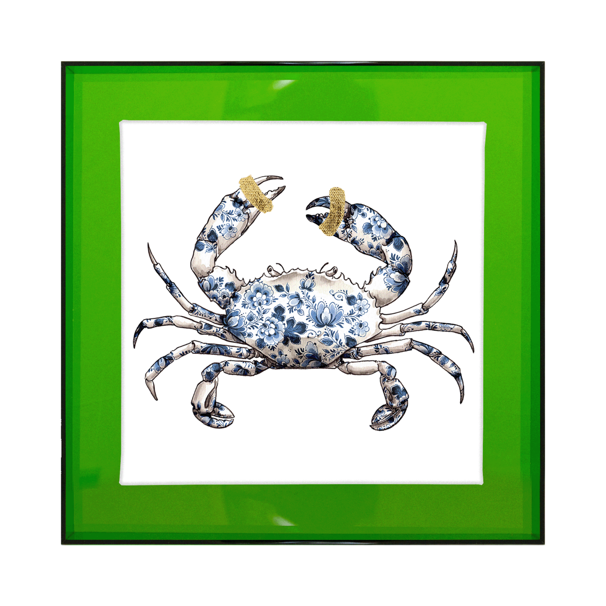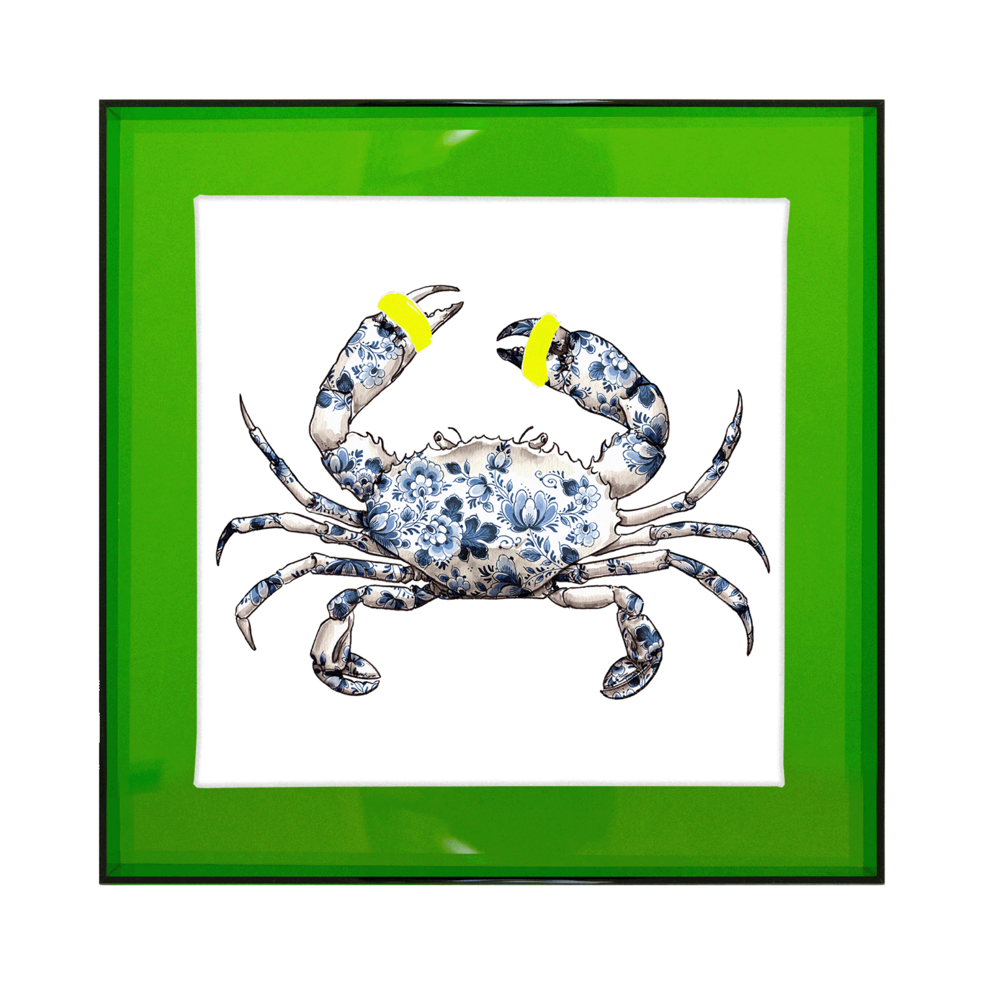 Het schilderij van de krab behoord tot de 'Holy crab' serie, samen met de crab op blauwe, roze of gouden achtergrond. Kies daarnaast ook voor een detail in jouw favoriete kleur: goud, roze, groen of geel.